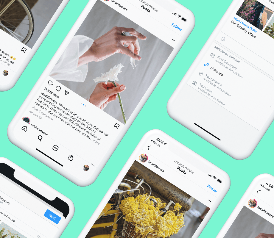 Auto publish means that the posts you’ve scheduled in Later will publish to Instagram without any more work on your side. For example, if you have a single photo post (complete with caption, first comment, location tag, etc.) set to auto publish at 3:00 PM on Saturday, that post will go live at 3:00 PM on Saturday.