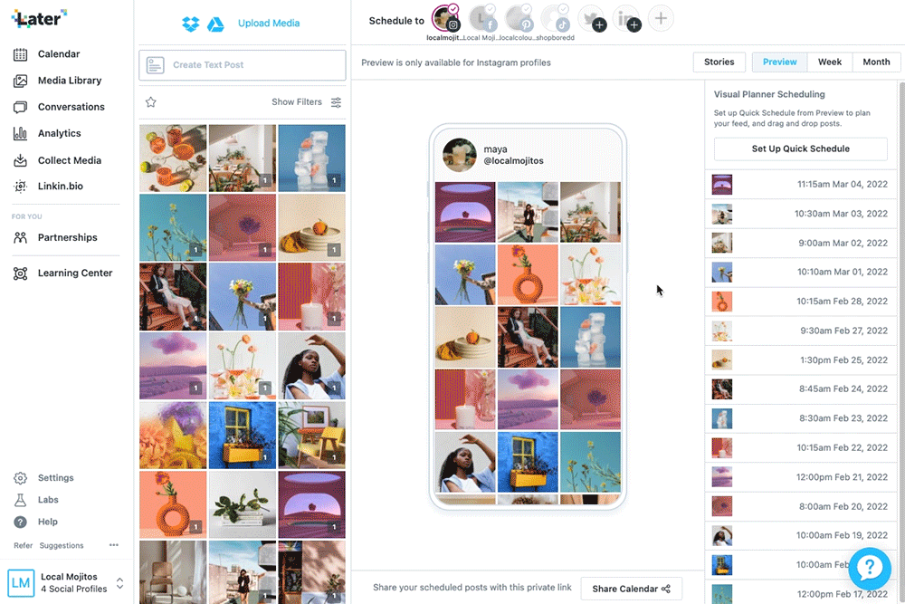 Some social media platforms have their own built-in social media scheduling tools — but it's easier and more efficient to use a single, all-in-one social media management platform like Later to schedule all your social media posts.