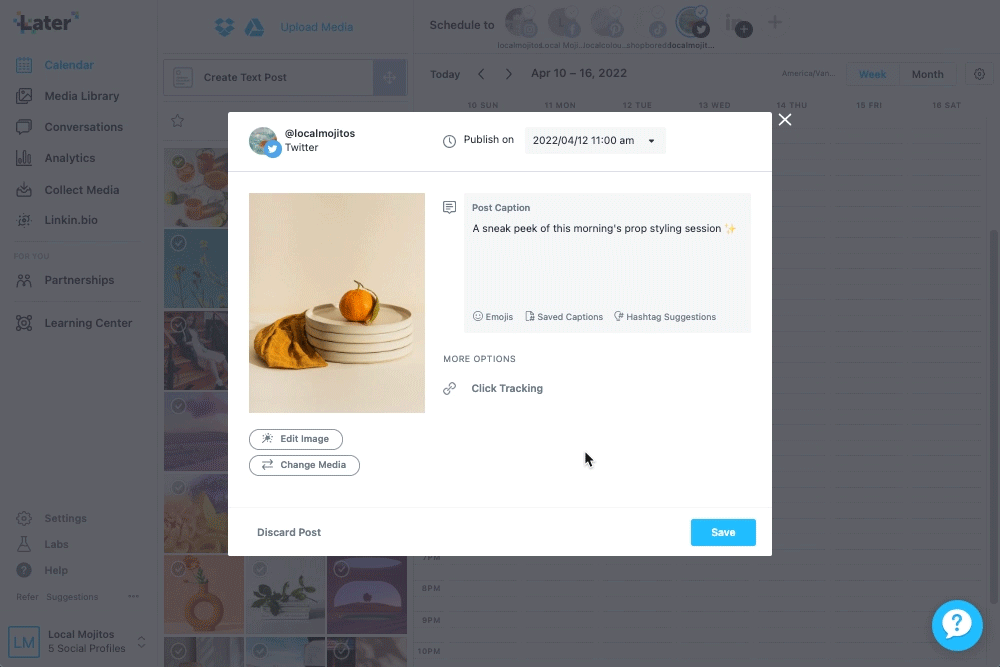 Just like a post-it note, Later’s Calendar Notes feature helps you bookmark upcoming content before you have your images or videos ready — which is great for planning and keeping everyone on the same page.