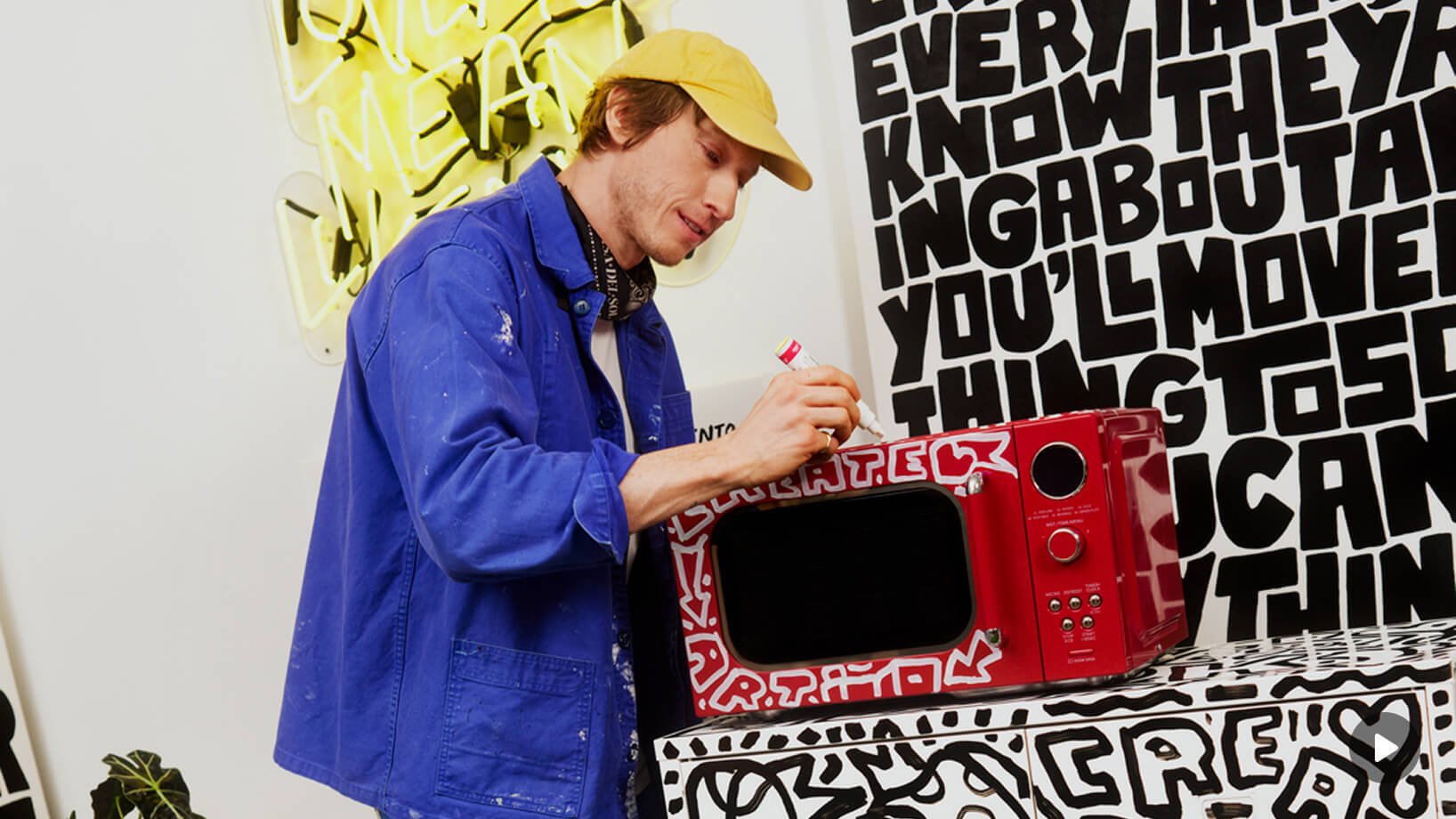 For this work: a custom breakfast nook tucked into the artist's studio. Cabinets, microwave, and a kettle are transformed into artwork, adding character to everyday home objects and personalizing the ritual experience. For Timothy, the best collaborations happen when creators challenge each other to try something that’s never been done before.