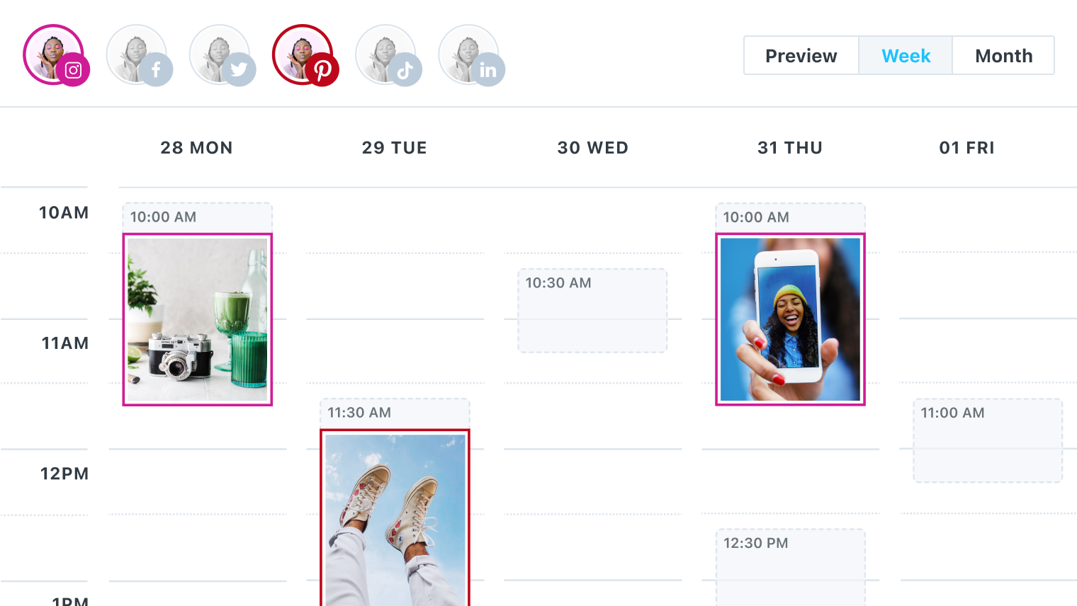 Achieve the aesthetic grid of your dreams and score major time-saving points with Auto Publish and multi-profile scheduling, which let you schedule your posts to multiple social profiles ahead of time. Plus, use our Collect Media tools to find user-generated content in seconds. Boss status, achieved.