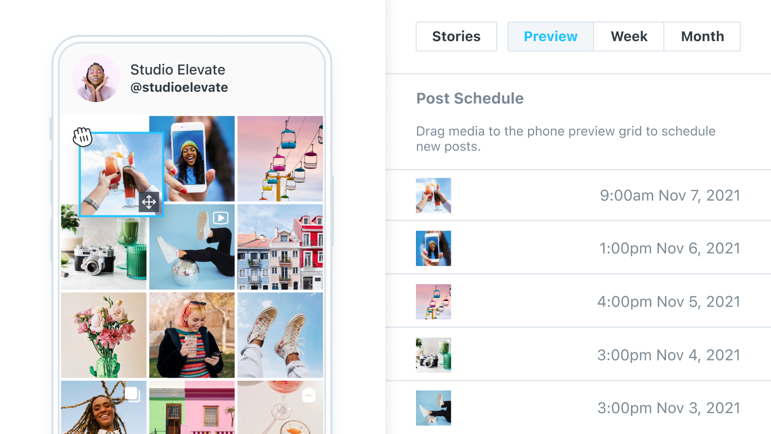 Achieve the aesthetic grid of your dreams and score major time-saving points with Auto Publish and multi-profile scheduling, which let you schedule your posts to multiple social profiles ahead of time. Plus, use our Collect Media tools to find user-generated content in seconds. Boss status, achieved.